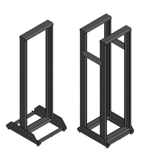 Открытые монтажные стойки имеют Широкую линейку по высоте (24U, 32U, 33U, 37U, 42U, 46U, 54U) и два вида конструкции (однорамная и двухрамная). Стойки позволяют выбрать оптимальное решение для установки вашего оборудования