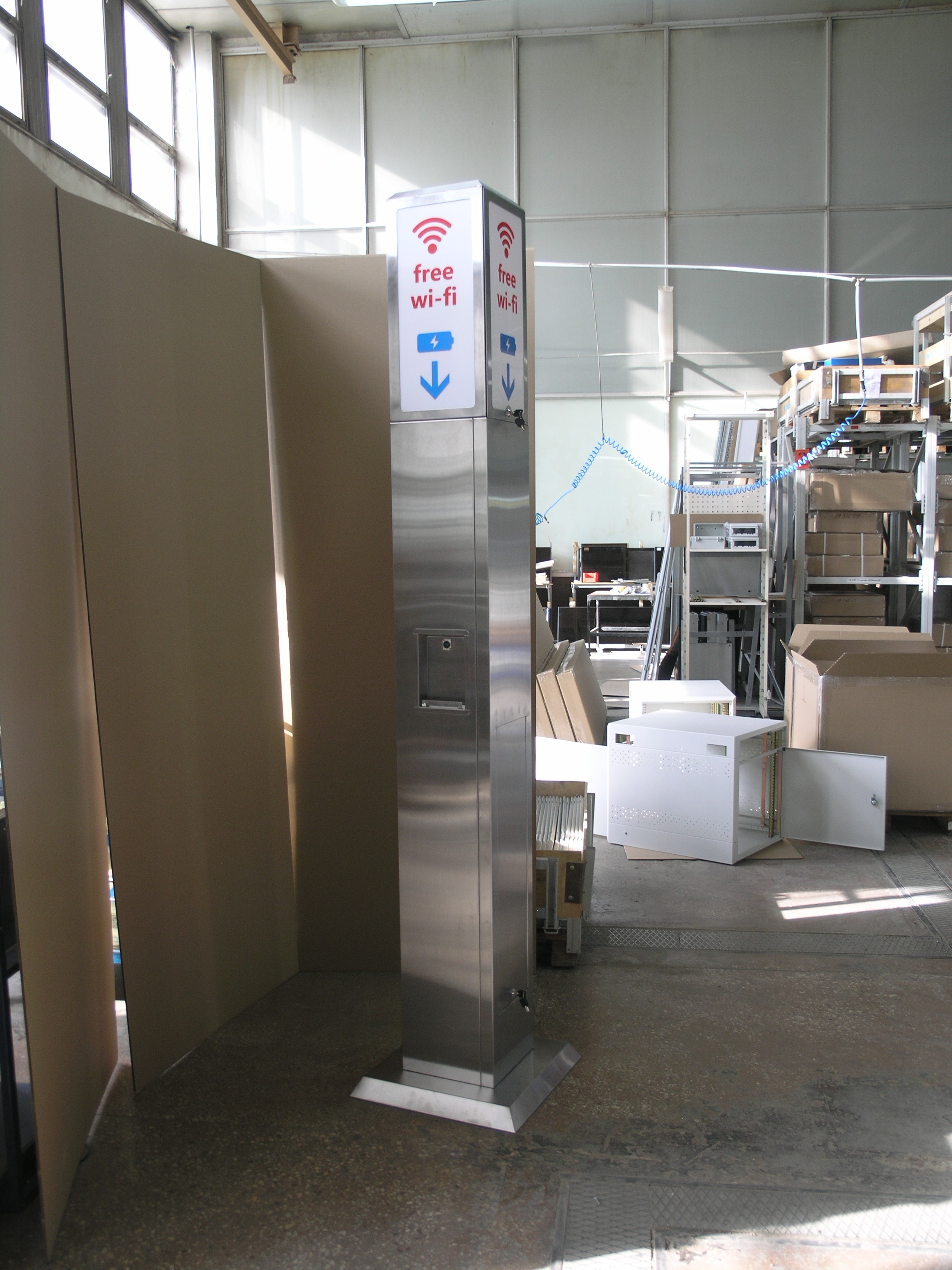 Стойка WiFi-USB 3.0 предназначена для организации уличных точек доступа WiFi и пунктов зарядки мобильных устройств. Верхняя часть стойки выполнена из радиопрозрачного материала с нанесенными опознавательными знаками и внутренней подсветкой.