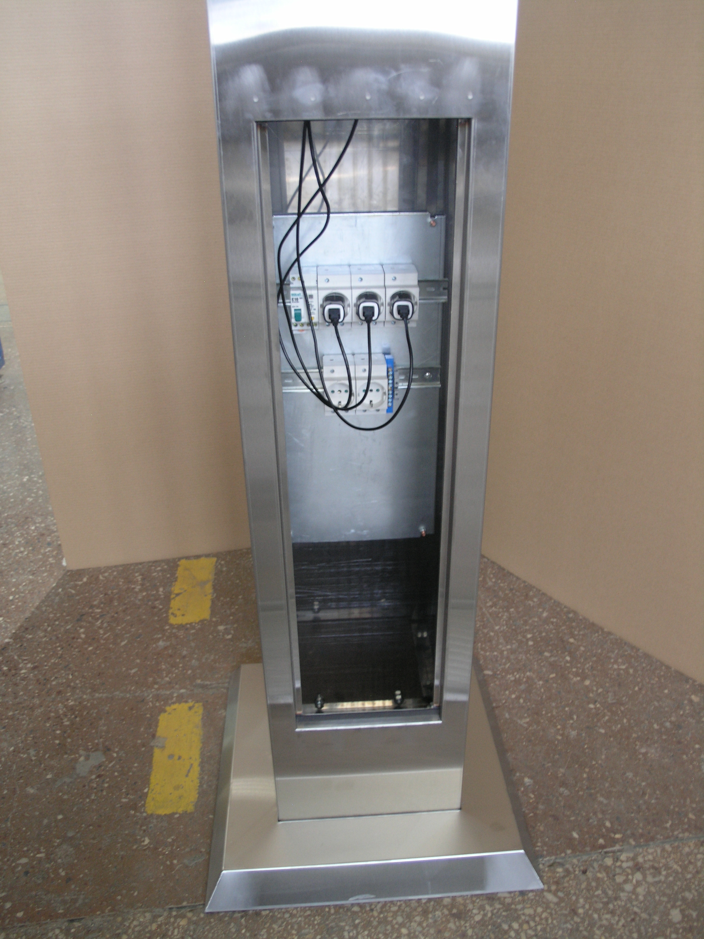 Стойка выполнена из листовой нержавеющей стали толщиной 1 мм, цоколь выполнен из нержавеющей стали толщиной 2 мм.